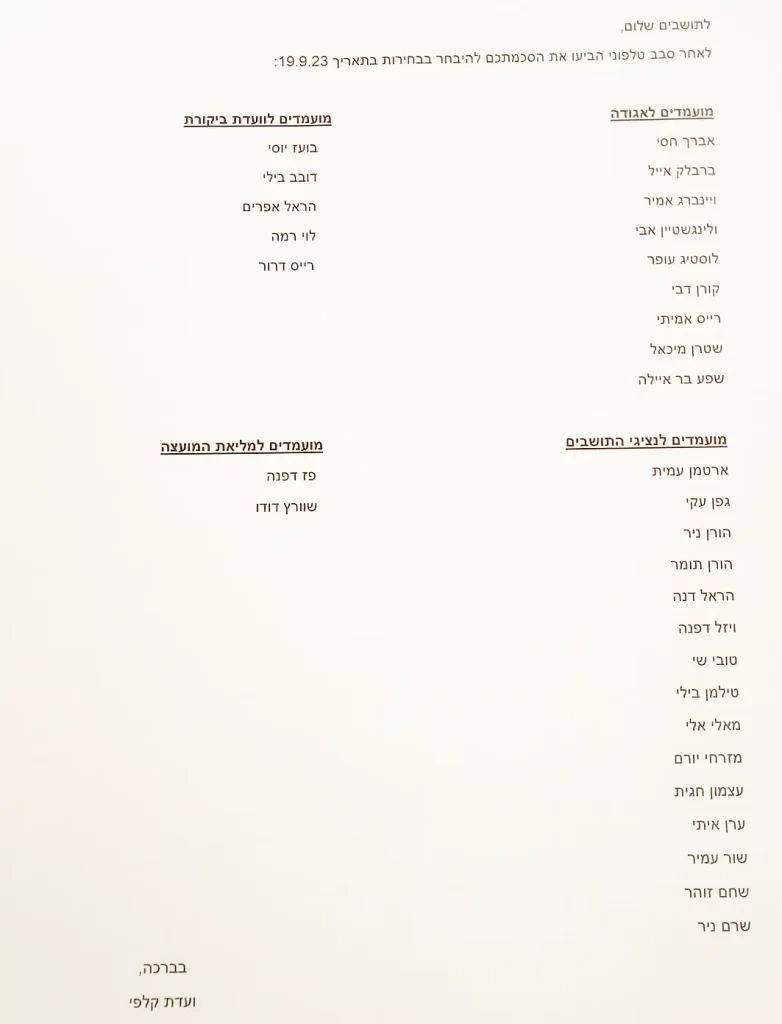 תוצאות הבחירות למוסדות הכפר בשדה ורבורג ברכות לנבחרים והצלחה בעשיה