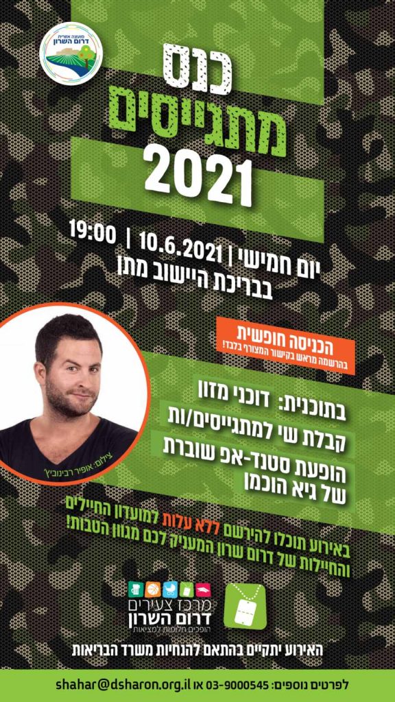 אגף תרבות, נוער וצעירים של דרום השרון גאה להזמין אתכם.ן לכנס המתגייסים.ות של מ.א. דרום השרון 2021! 🤟🏼