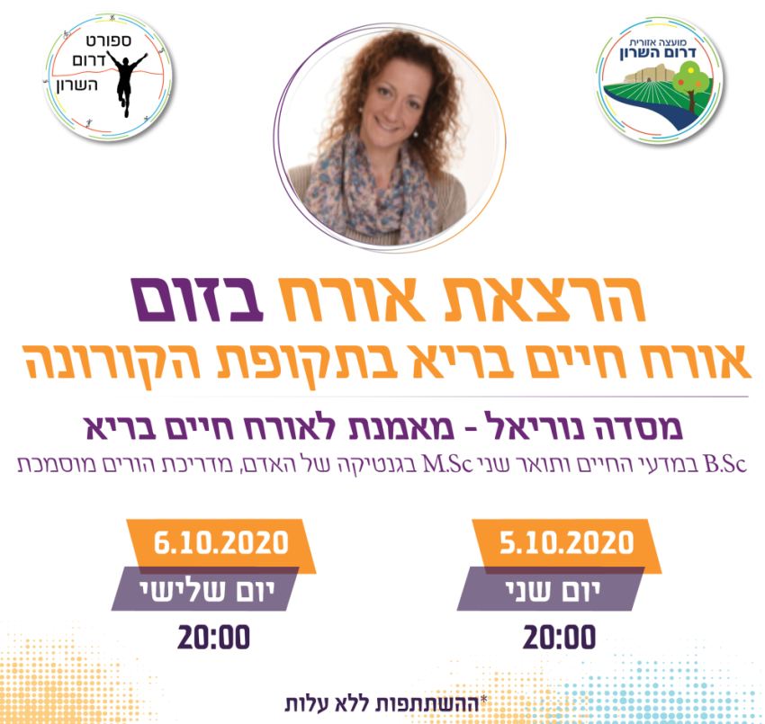 מוזמנים להכנס ללינק המצורף ולהצטרף להרצאה על אורח חיים בריא במשפחה בתקופת הקורונה.