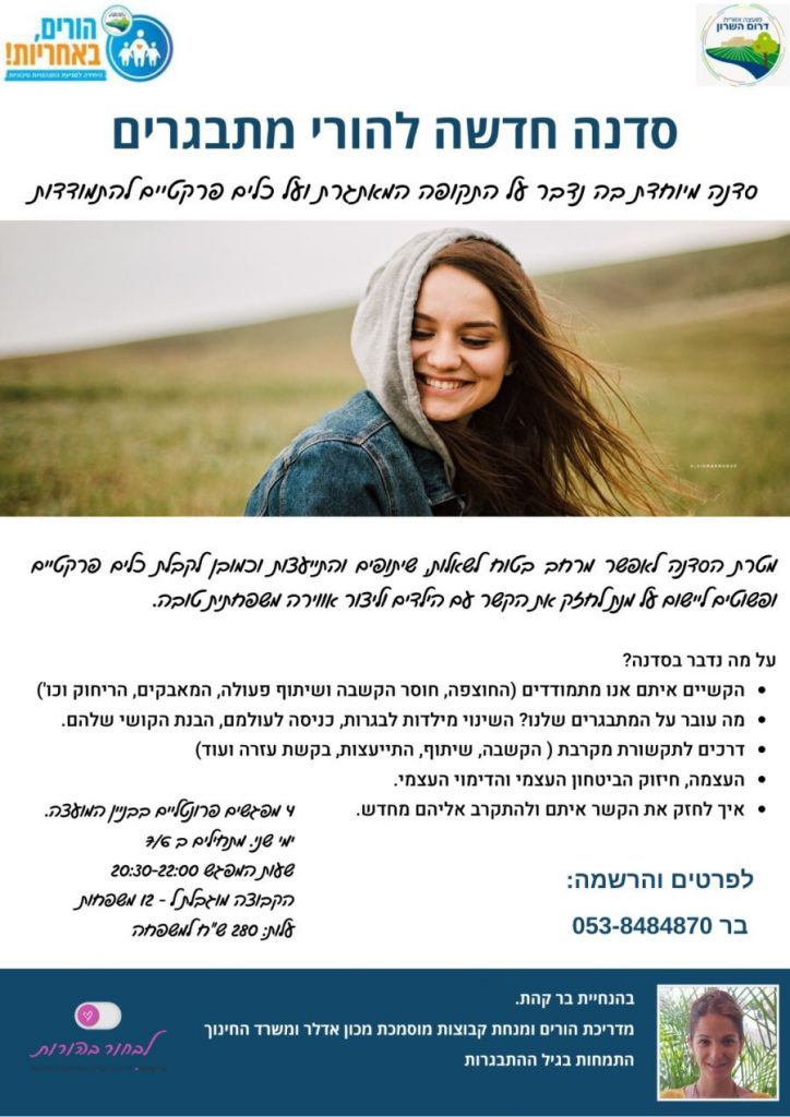 אנו מזמינים אתכם להצטרף לסדנת הורים חדשה המיועדת להורי מתבגרים.