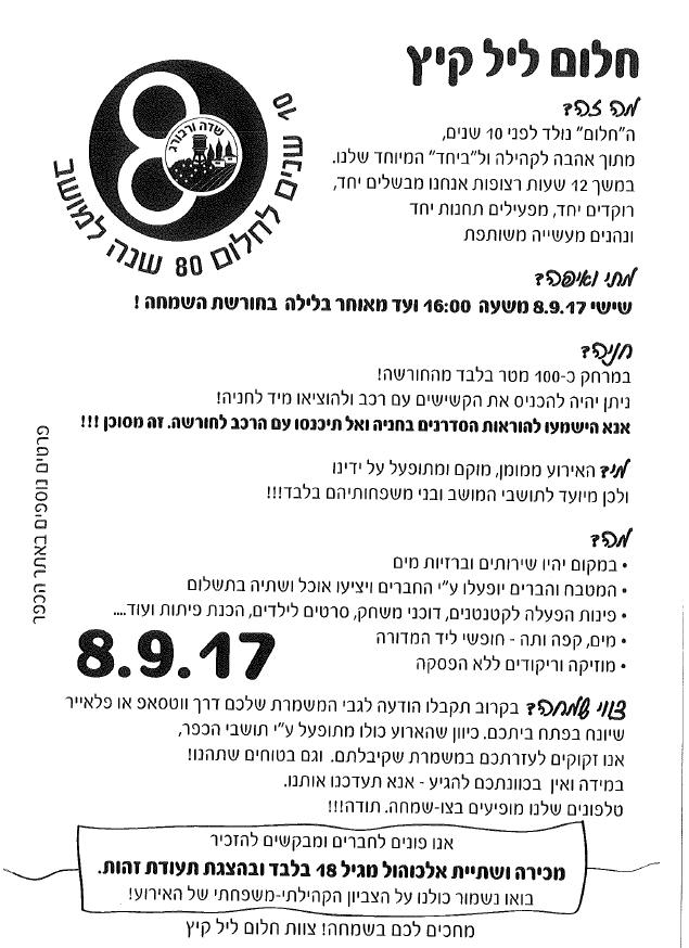 תאריך ושעת האירוע: 09-08-2017 16:00
