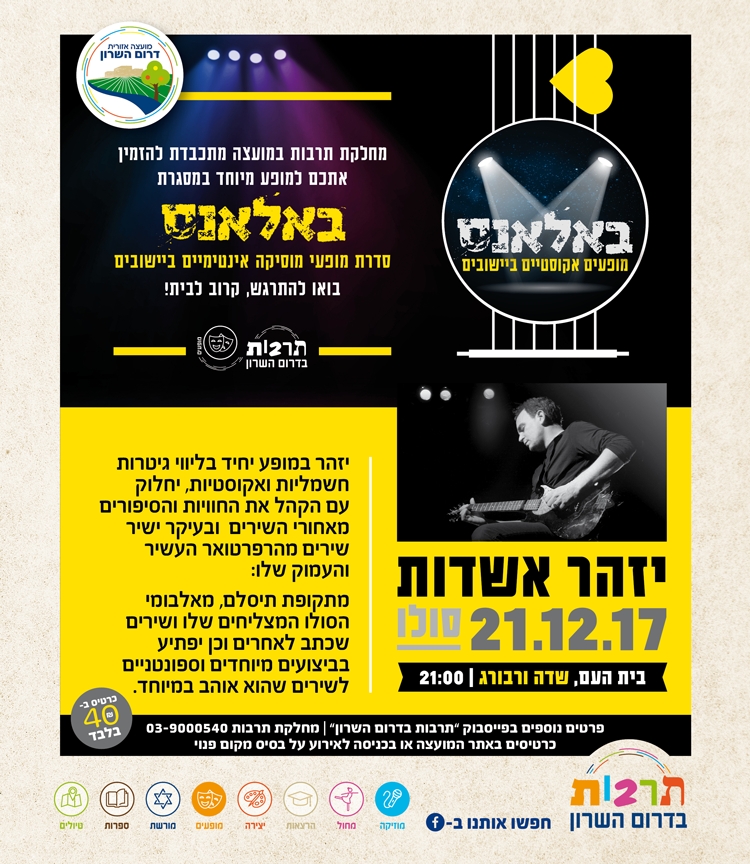מחלקת תרבות שמחה להזמינכם, למופע נוסף בסדרת "באלאנס" – מופעים אקוסטים ביישובים .