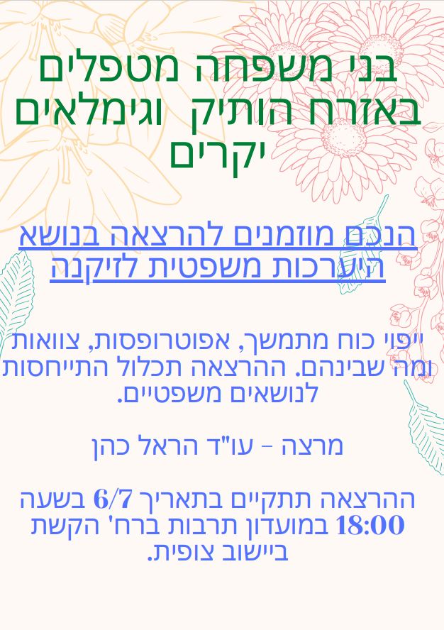 הזמנה להרצאה – בני משפחה מטפלים בנושא היעכרות משפטית